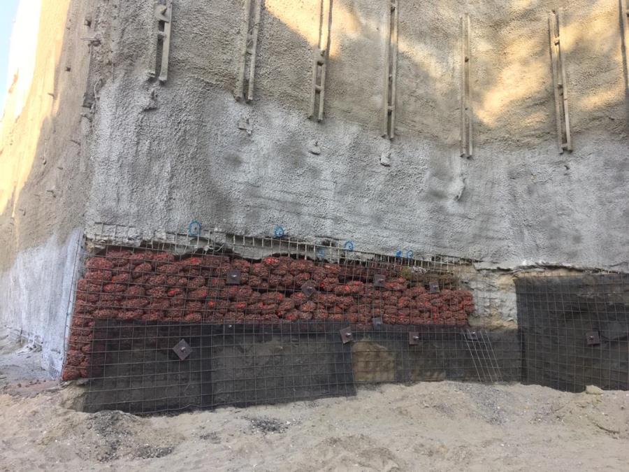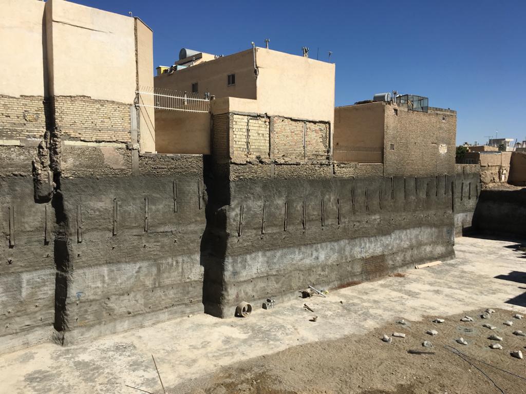 پايدارسازي ديواره هاي گود با نصب ميخ خاک، پشت بند و بتن پاشي.